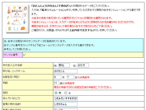 ※データご入力後、「絵本シミュレーション」ボタンを押す事でバックアップされます。