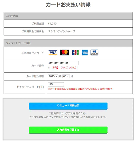 お支払方法にクレジットカードをご選択いただきました場合 ![]() |